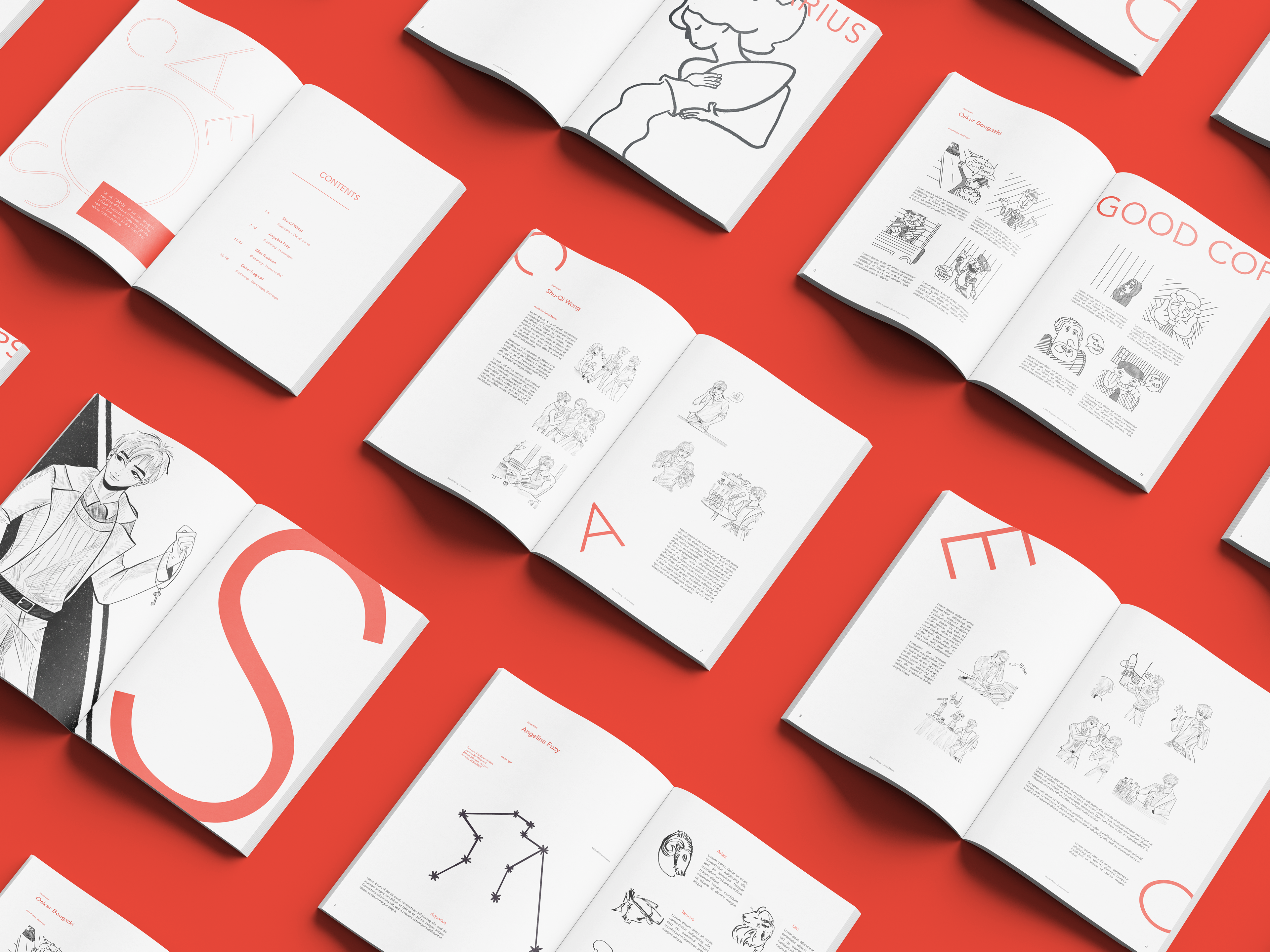 CAEOS magazine focuses on bringing together different creatives and their unique illustrative styles through the use of line work and a black-and-white colour palette.